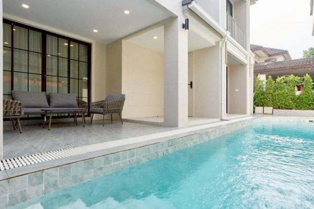 คุณสมบัติ : สระว่ายน้ำ , ที่จอดรถ , สวนหย่อม , เฟอร์นิเจอร์และอุปกรณ์ภายในครบครัน , สระว่ายน้ำส่วนตัว
