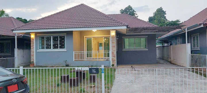 House spec : 3 Bedrooms, 2 bathrooms, 72.4 Sq.w. 112 Sq.m. good location not far from Maejo Market, Sansai Hospital, Meechok Plaza, Central Festival. 3 卧室,2 浴室。面积 72.4 平方哇。面积 112 平方米。 Furniture -Air conditioner 3 -Hot shower 2 -Bed 1 -Wardrobe 1