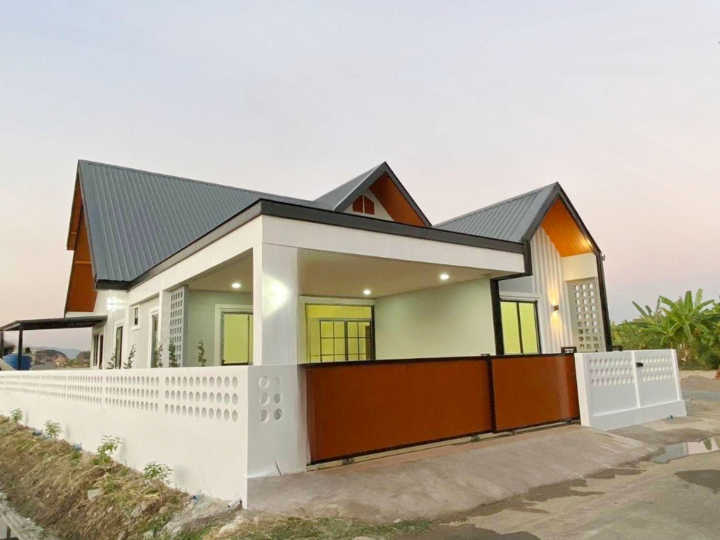 House spec : 4 Bedrooms, 3 bathrooms, 56 Sq.w. not far from Grand Canyon Chiang Mai, Hang Dong Hospital, Hang Dong Market, Kad Farang. 4 卧室,3 浴室。面积 56 平方哇。 Furniture -Air conditioner 4 -Hot shower 3 -Bed 3 -Wardrobe 3 -Dining table 1 -Refrigerator 1 -Microwave 1