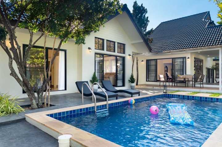 คุณสมบัติ : สระว่ายน้ำ , ที่จอดรถ , สวนหย่อม , เฟอร์นิเจอร์และอุปกรณ์ภายในครบครัน , สระว่ายน้ำส่วนตัว