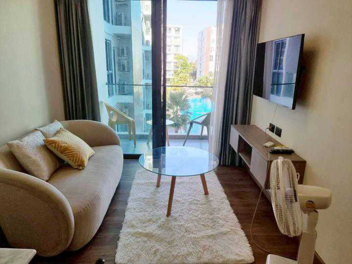 House spec : 1 Bedroom, 1 bathroom, 37 sq.m. at business location not far from Meechok Plaza, Arcade Bus Station, Big C Extra and McCormick Hospital. 1 卧室,1 浴室。面积 37 平方米。 Furniture -Air conditioner 2 -Hot shower 1 -Bed 1 -Wardrobe 1 -Loungeset 1 -Dining table 1 -Television 1 -Refrigerator 1 -Microwave 1 -Washing machine 1