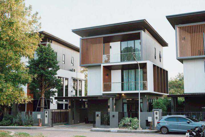 บ้านในโครงการ ให้เช่าเดือนละ 80,000 บาท ใกล้มีโชคพลาซ่า No.5H554 清迈美丽的3层别墅出租 。每月租金 80,000 泰铢,。No.5H554