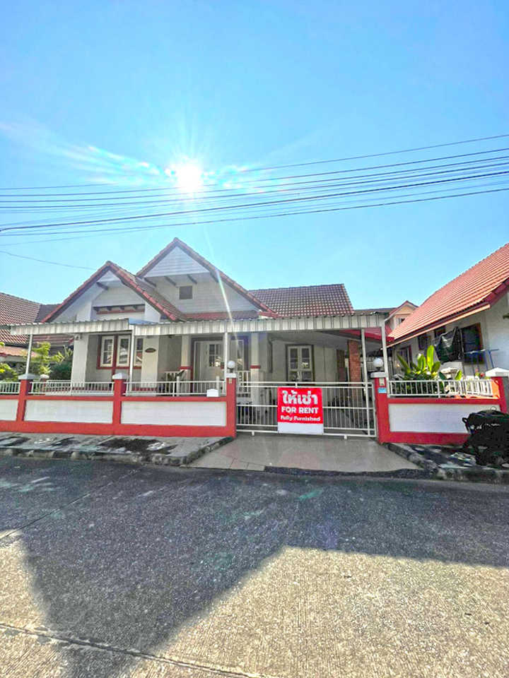 บ้านชั้นเดียว มี 3 ห้องนอน 2 ห้องน้ำ พื้นที่ 50 ตรว. การเดินทางสะดวก-สบาย บรรยากาศเงียบสงบเหมาะกับการพักผ่อน ใกล้กาดฝรั่ง, สนามบิน และสิ่งอำนวยความสะดวกต่างๆอีกมากมาย เฟอร์นิเจอร์ภายใน -แอร์ 4 เครื่อง -เครื่องทำน้ำอุ่น 2 เครื่อง -เตียงนอน 2 -ตู้เสื้อผ้า 2 -โซฟารับแขก 1 -โต๊ะทานข้าว 1 -ทีวี 1 เครื่อง -ตู้เย็น 1 เครื่อง -ไมโครเวฟ 1 เครื่อง -เครื่องซักผ้า 1 เครื่อง
