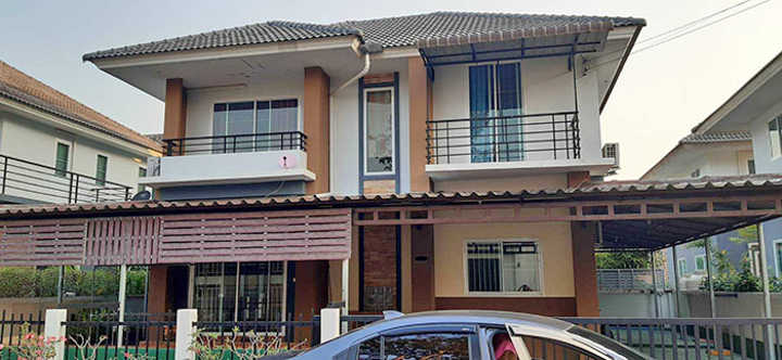 House spec : 3 Bedrooms, 3 bathrooms, 55 Sq.w. near Maejo Market, Tonkla School, Lotus Ruamchok and Meechok Plaza. Furniture -Air conditioner 5 -Hot shower 3 -Bed 3 -Wardrobe 3 -Loungeset 1 -Dining table 1 -Television 1 -Refrigerator 1 -Microwave 3 -Washing machine 1