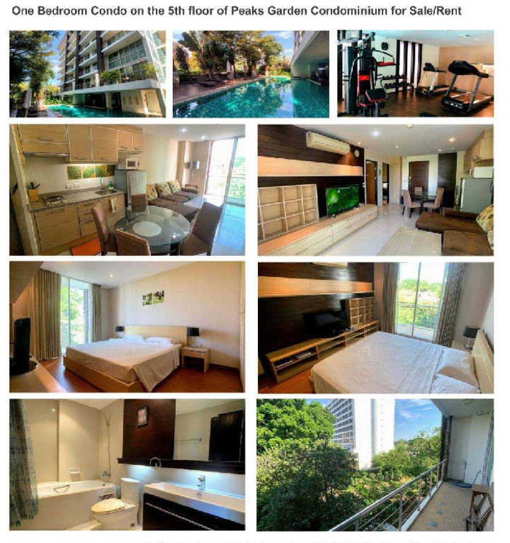 พีคส์ การ์เด้น คอนโดมิเนียม ชั้น 5 ขนาดห้อง 53 ตรม. 1 ห้องนอน 1 ห้องน้ำ เดินทางเข้า-ออกสะดวกสบาย ไม่ไกลจากประตูท่าแพ, เซ็นทรัลแอร์พอร์ต, เซ็นทรัลเฟสติวัล, ขนส่งอาเขต และสิ่งอำนวยความสะดวกต่างๆอีกมากมาย เฟอร์นิเจอร์ภายใน -แอร์ -เครื่องทำน้ำอุ่น -เตียงนอน -ตู้เสื้อผ้า -โซฟารับแขก -โต๊ะทานข้าว -ทีวี -ตู้เย็น -ไมโครเวฟ