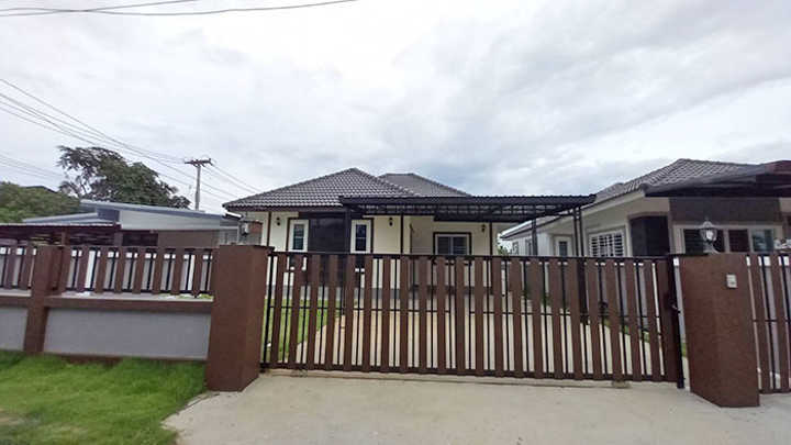 บ้านเดี่ยวชั้นเดียว 3 ห้องนอน 2 ห้องน้ำ พื้นที่ดิน 58 ตรว. พื้นที่ใช้สอย 115 ตรม. ทำเลที่ตั้ง ตำบลสันนาเม็ง อำเภอสันทราย ไม่ไกลจากตลาดบ่อหิน, ตลาดแม่กวง, ตลาดสามแยก, โลตัสสันคะยอม รายละเอียดของแถม -เครื่องปรับอากาศ -เครื่องทำน้ำอุ่น 2 เครื่อง
