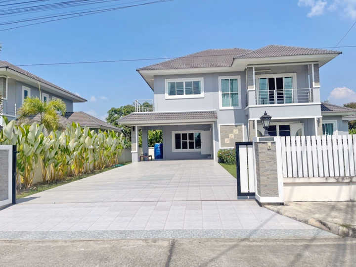 บ้านเดี่ยวสองชั้นภายในตกแต่งสวย เฟอร์นิเจอร์ครบ มี 4 ห้องนอน 5 ห้องน้ำ พื้นที่ 180 ตรว. ทำเลที่ตั้ง ต.สันป่าเปา อ.สันทราย ไม่ไกลจากรพ.ดอยสะเก็ด, ตลาดบ่อหิน, เซ็นทรัลเฟสติวัล, ตลาดสามแยก, ตลาดแม่กวง. เฟอร์นิเจอร์ภายใน -แอร์ 6 -เครื่องทำน้ำอุ่น 5 -เตียงนอน 4 -ตู้เสื้อผ้า 4 -โซฟารับแขก 1 -โต๊ะทานข้าว 1 -ทีวี 1 -ตู้เย็น 1 -ไมโครเวฟ 1 -เครื่องซักผ้า 1