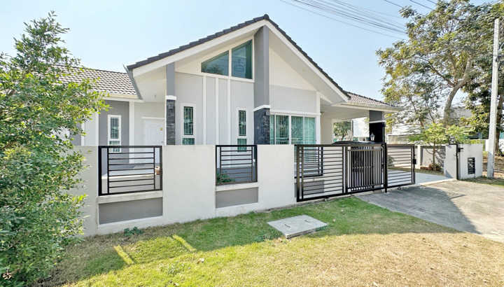 บ้านเดี่ยวชั้นเดียว มี 3 ห้องนอน 2 ห้องน้ำ พื้นที่ 71 ตรว. พื้นที่ใช้สอย 106 ตรม. ทำเลที่ตั้ง ตำบลสันผักหวาน อำเภอหางดง ไม่ไกลจากแม็คโครหางดง, บิ๊กซีแม่เหียะ, โลตัสหางดง, เซ็นทรัลแอร์พอร์ต, สนามบิน และสิ่งอำนวยความสะดวกต่างๆมากมาย. เฟอร์นิเจอร์ภายใน -แอร์ 3 เครื่อง -เครื่องทำน้ำอุ่น 3 เครื่อง