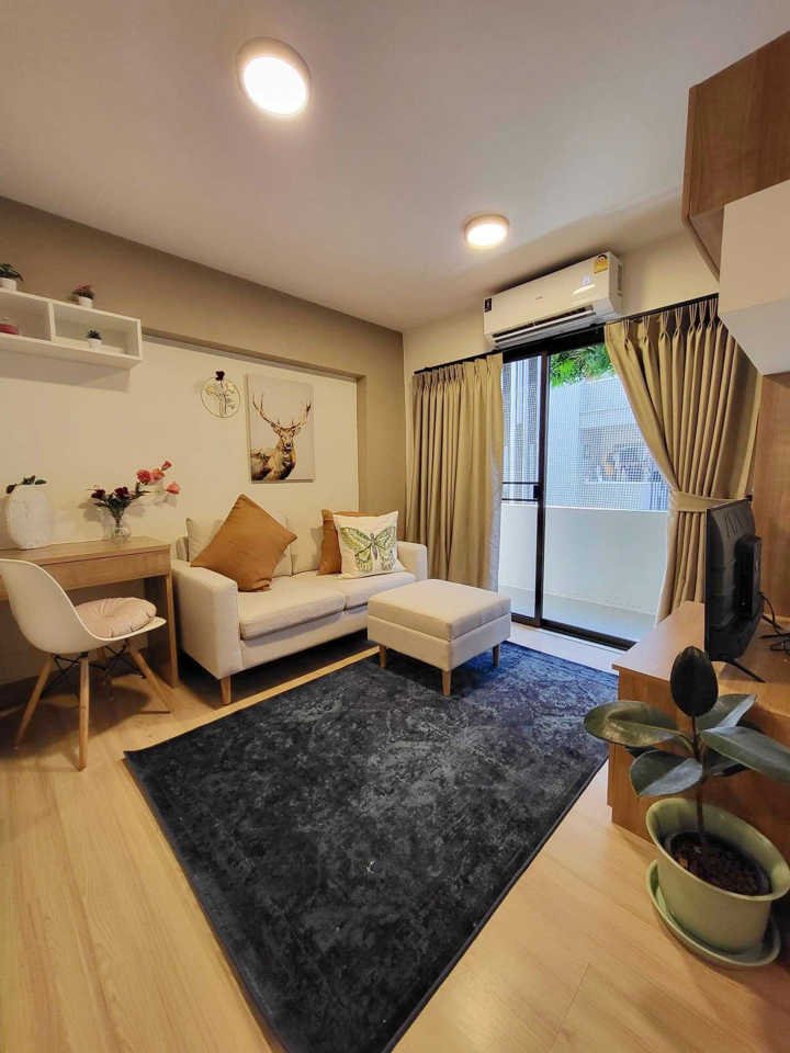 House spec : 1 Bedroom, 1 bathroom, 34 sq.m. not far from CentralPlaza Chiangmai Airport, Chiang Mai International Airport, Big C Mae Hia, Lotus Hangdong. Furniture -Air conditioner 1 -Hot shower 1 -Bed 1 -Wardrobe 1 -Loungeset 1 -Dining table 1 -Television 1 -Refrigerator 1 -Microwave 1