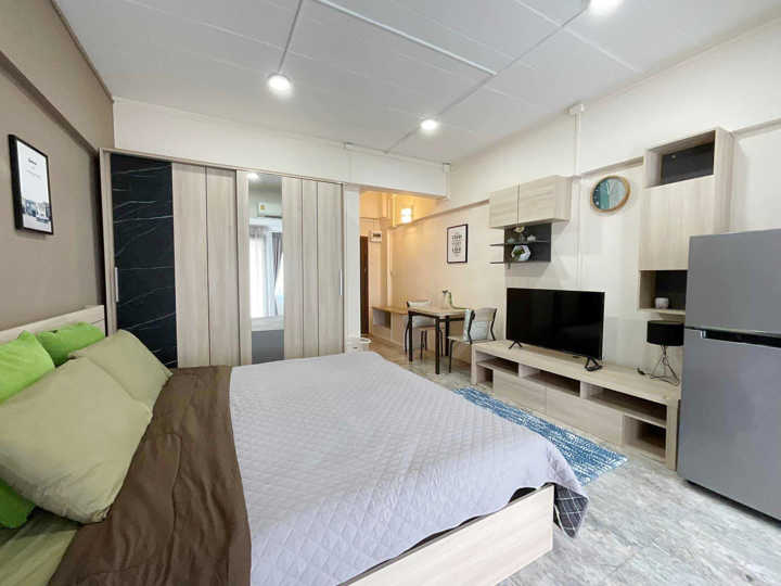 House spec : 1 Bedrooms, 1 bathrooms , 34 sq.m. not far from Rajamangala University of Technology Lanna, Maya, Nimmanhaemin, Chiang Mai University. Furniture -Air conditioner 1 -Hot shower 1 -Bed 1 -Wardrobe 1 -Loungeset 1 -Dining table 1 -Television 1 -Refrigerator 1 -Microwave 1 -Washing machine 1