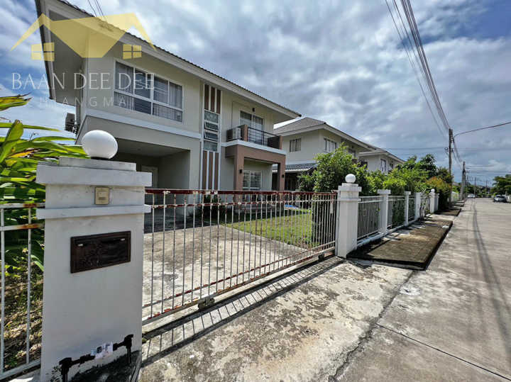 บ้านเดี่ยวสองชั้น มี 3 ห้องนอน 3 ห้องน้ำ พื้นที่ 65 ตรว. ไม่ไกลจากบิ๊กซีแม่เหียะ, รร.นานาชาติลานนา, แม็คโครหางดง, เซ็นทรัลแอร์พอร์ต และสิ่งอำนวยความสะดวกต่างๆอีกมากมาย.