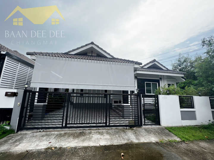 บ้านเดี่ยวชั้นเดียว มี 3 ห้องนอน 2 ห้องน้ำ พื้นที่ 47 ตรว. เดินทางสะดวกสบาย ไม่ไกลจากกาดผักหวาน, แม็คโครหางดง, โลตัสหางดง, เซ็นทรัลแอร์พอร์ต, สนามบิน และสิ่งอำนวยความสะดวกต่างๆมากมาย. เฟอร์นิเจอร์ภายใน -แอร์ 5 เครื่อง -เครื่องทำน้ำอุ่น 2 เครื่อง -เตียงนอน 3 -ตู้เสื้อผ้า 3 -โซฟารับแขก 1 -โต๊ะทานข้าว 1 -ทีวี 1 เครื่อง -ตู้เย็น 1 เครื่อง -ไมโครเวฟ 1 เครื่อง -เครื่องซักผ้า 1 เครื่อง