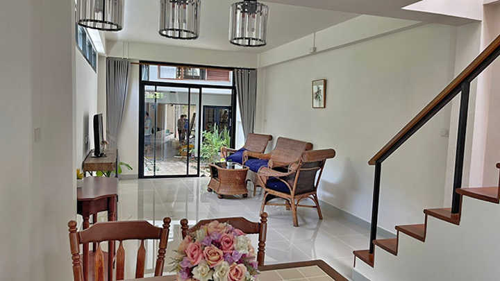 House spec : 2 Bedrooms, 3 bathrooms, 22 Sq.w. in the city center. Furniture -Air conditioner 2 -Hot shower 2 -Bed 2 -Wardrobe 2 -Loungeset 1 -Dining table 1 -Television 1 -Refrigerator 1 -Microwave 1 -Washing machine 1