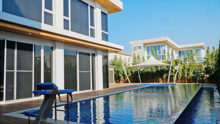 รายละเอียด : บ้านโมเดิร์นพร้อมสระว่ายน้ำส่วนตัว ให้เช่าเดือนละ 75,000 บาท No.13H455