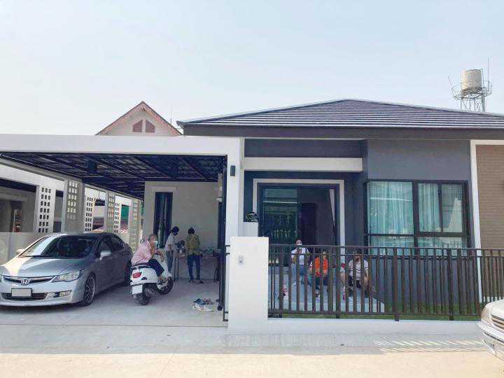 House spec : 3 Bedrooms, 2 bathrooms, 45 Sq.w. not far from Maejo Market, SanSai Wittayakhom School, Sansai Hospital, CentralFestival. 3 卧室,2 浴室。面积 45 平方哇。 Furniture -Air conditioner 2 -Hot shower 2 -Bed 1 -Wardrobe 1 -Loungeset 1 -Dining table 1 -Television 1 -Refrigerator 1 -Microwave 1 -Washing machine 1