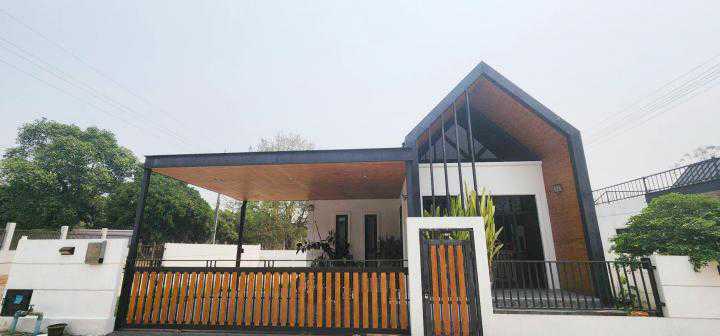 House spec : 2 Bedrooms, 2 bathrooms, 52 sq.w. convenient travel not far from Maejo Market, Sansai Hospital, Tonkla School. 2 卧室,2 浴室。面积 52 平方哇。 Furniture -Air conditioner 2 -Hot shower 2 -Bed 2 -Wardrobe 2 -Loungeset 1
