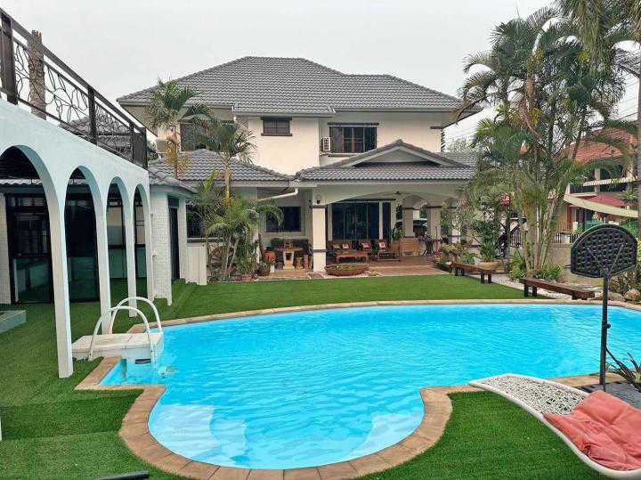 House spec : 5 Bedrooms, 4 bathrooms, 188 Sq.w. convenient travel not far from CentralFestival, Maejo University, Lotus Ruamchok and Nakornpayap International School. 5 卧室,4 浴室。面积 188 平方哇。 Furniture -Air conditioner -Hot shower -Bed -Wardrobe -Loungeset -Dining table -Television -Refrigerator -Microwave -Washing machine
