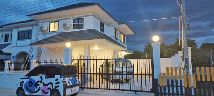 House spec : 3 Bedrooms, 3 bathrooms, 65 Sq.w. not far from Wiang Kum Kam, K-Park, Varee Chiangmai School, CentralPlaza Chiangmai Airport, Chiang Mai International Airport. 3 卧室,3 浴室。面积 65 平方哇。 Furniture -Air conditioner 3 -Hot shower 3 -Bed 3 -Wardrobe 3 -Loungeset 1 -Dining table 1 -Television 1 -Refrigerator 1 -Microwave 1 -Washing machine 1