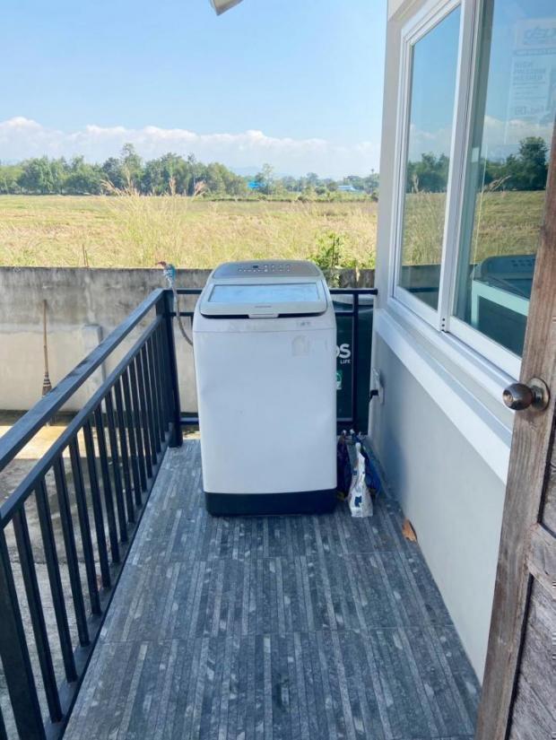 House spec : 2 Bedrooms, 2 bathrooms, 51 Sq.w. not far from Mae Kuang Market, HomePro Sansai, Sam Yak Market. 2 卧室,2 浴室。面积 51 平方哇。 Furniture -Air conditioner 2 -Hot shower 2 -Bed 2 -Wardrobe 2 -Loungeset 1 -Dining table 1 -Television 1 -Refrigerator 1 -Microwave 1 -Washing machine 1