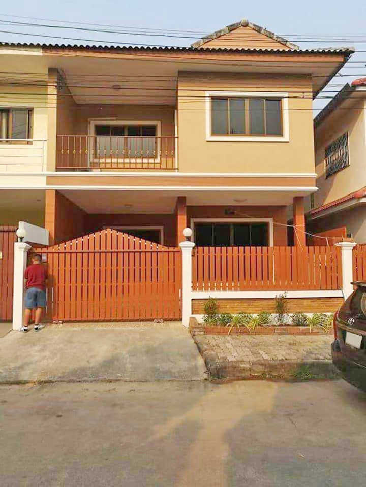 House spec : 4 Bedrooms, 3 bathrooms, 40 Sq.w. near Maejo University, Lotus Ruamchok, Meechok Plaza, CentralFestival. Furniture -Air conditioner 4 -Hot shower 3 -Bed 2 -Wardrobe 2 -Loungeset 1 -Dining table 1 -Refrigerator 1 -Microwave 1