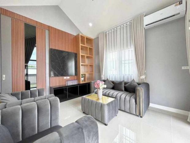House spec : 3 Bedrooms, 2 bathrooms, 65.5 Sq.w. not far from Hang Dong Hospital, Kad Farang, Panyaden International School and Makro Hangdong. 3 卧室,2 浴室。面积 65.5 平方哇。 Furniture -Air conditioner 3 -Hot shower 2 -Bed 1 -Wardrobe 1 -Loungeset 1 -Dining table 1 -Television 1 -Refrigerator 1 -Microwave 1 -Washing machine 1
