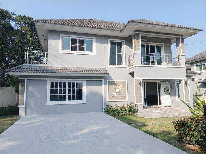House spec : 5 Bedrooms, 4 bathrooms, 120 Sq.w. not far from Mae Kuang Market, Doi Saket Hospital, Bo Hin Market, Botanical Tweechol. 5 卧室,4 浴室。面积 120 平方哇。 Furniture -Air conditioner 6 -Hot shower 1 -Bed 5 -Wardrobe 5 -Loungeset 1 -Dining table 1 -Television 1 -Refrigerator 1 -Microwave 1 -Washing machine 1